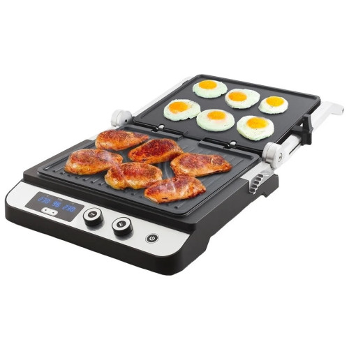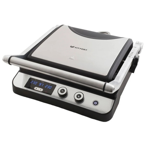 Контактный электрический гриль Kitfort KT-1636 позволяет готовить стейки, овощи, рыбу, бутерброды, гренки и многое другое. Конструкция 3 в 1 позволяет использовать гриль в 3 режимах. В 2-стороннем режиме гриль закрывается крышкой, и продукты готовятся одновременно с 2 сторон. В режиме с приподнятой крышкой верхняя крышка нависает над готовящимися продуктами, но не касается их. Это бывает необходимо в случае, если требуется 2-сторонний нагрев, но куски продуктов имеют неодинаковую толщину, либо если требуется исключить давление крышки на них. В этом режиме можно готовить бутерброды или разогревать пиццу. В 1-стороннем режиме крышка гриля откидывается на 180°: гриль превращается в большую жаровню, и для приготовления блюд можно использовать обе её поверхности.