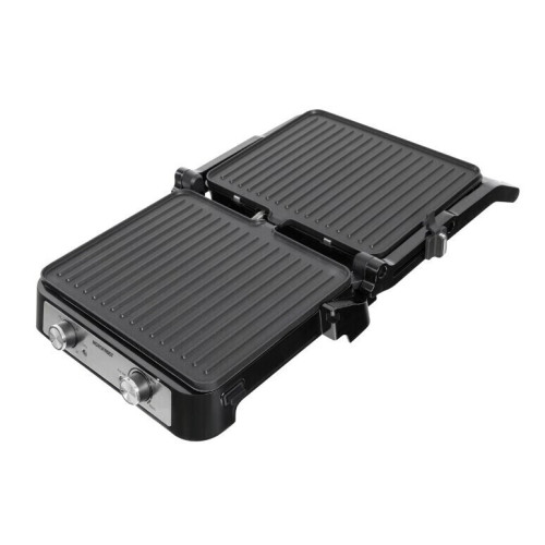 Электрогриль NORDFROST G 220 X с двумя широкими рифлеными панелями подходит для домашнего использования и позволяет готовить вкусное и полезное мясо, рыбу, овощи и другие блюда с характерным рифленым узором. Мощность электрогриля 2000 Вт. Выставить таймер и настроить температуру нагрева можно с помощью поворотных регуляторов. Удобное механическое управление позволяет плавно регулировать степень прожарки. Максимальная рабочая температура нагрева – 230 градусов. Время установки таймера приготовления до 30 минут. Световой индикатор слева от ручки показывает, когда устройство находится в рабочем состоянии и готово к использованию. Съемные панели с антипригарным покрытием легкие в уходе, позволяют готовить полезные и вкусные блюда без использования масла. Специальный контейнер в задней части панелей предназначен для стекания, выделенного из мяса жира по рифленой поверхности. Встроенная выдвижная ножка увеличивает наклон гриля, это способствует еще лучшему удалению жира. Фиксатор угла открытия крышки позволяет регулировать расстояние между пластинами в зависимости от толщины продуктов. Это дает возможность приготовить на гриле тонко нарезанный картофель или толстые куски стейка. На открытом гриле, раскрывая на 180 градусов обе рабочие панели, можно приготовить много овощей, мяса или рыбы разного размера, формы и толщины. Устройство оснащено с защитой от перегрева, что гарантирует безопасность во время эксплуатации.