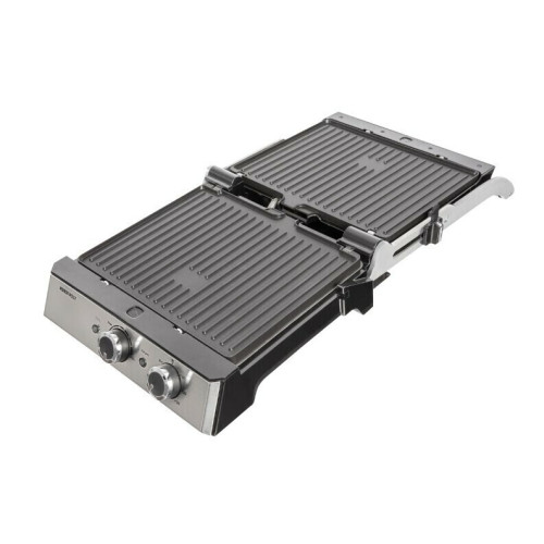Электрогриль NORDFROST GR 240 X с двумя широкими рифлеными панелями подходит для домашнего использования и позволяет готовить вкусное и полезное мясо, рыбу, овощи и другие блюда с характерным рифленым узором. Мощность электрогриля 2000 Вт. Выставить таймер и настроить температуру нагрева можно с помощью поворотных регуляторов. Удобное механическое управление позволяет плавно регулировать степень прожарки. Максимальная рабочая температура нагрева – 230 градусов. Время установки таймера приготовления до 30 минут. Световой индикатор слева от ручки показывает, когда устройство находится в рабочем состоянии и готово к использованию. Съемные панели с антипригарным покрытием легкие в уходе, позволяют готовить полезные и вкусные блюда без использования масла. В модели два типа поверхности у панелей: рифленые и плоские. Специальный контейнер в задней части панелей предназначен для стекания выделенного из мяса жира. Встроенная выдвижная ножка увеличивает наклон гриля, это способствует еще лучшему удалению жира. Фиксатор угла открытия крышки позволяет регулировать расстояние между пластинами в зависимости от толщины продуктов. Это дает возможность приготовить на гриле тонко нарезанный картофель или толстые куски стейка. На открытом гриле, раскрывая на 180 градусов обе рабочие панели, можно приготовить много овощей, мяса или рыбы разного размера, формы и толщины. Устройство оснащено с защитой от перегрева, что гарантирует безопасность во время эксплуатации.