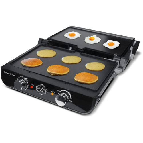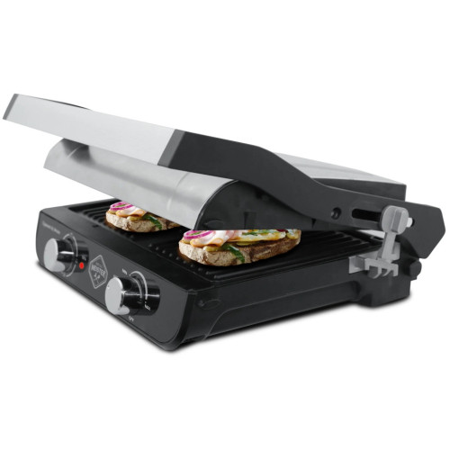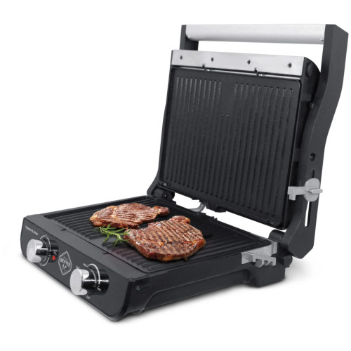 Электрогриль Zigmund & Shtain ZEG-925 Вся пища, приготовленная на гриле, получается вкусной и диетической, т.к. при ее приготовлении не используется масло, а излишки жира выделяются и собираются в специальном поддоне. Таким образом еда не содержит холестерин и канцерогены. Благодаря независимому нагреву верхней и нижней панели, а также возможности их установки в нескольких положениях, гриль можно использовать для различных целей. Функция “Контактный гриль” – закрытый пресс-гриль Функция “Жарочная поверхность” – верхняя панель фиксируется под углом 90 °, для жарки используется только нижняя панель Функция “Барбекю” – гриль открывается на 180° и превращается в большую жарочную поверхность Функция “Румяная корочка” – верхняя панель фиксируется с помощью бокового рычага на высоте 5 см и не соприкасается с продуктами Функция “Запекание” с эффектом жаровни – используется форма для запекания, которая устанавливается между панелями гриля