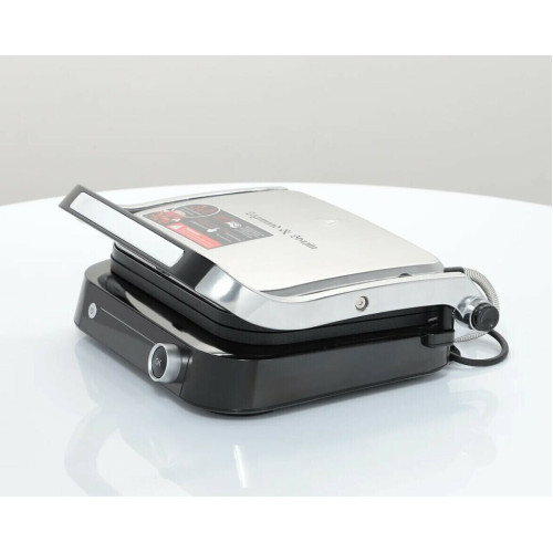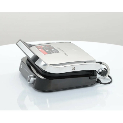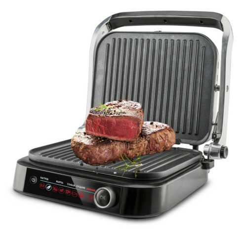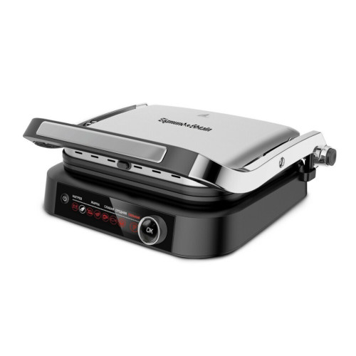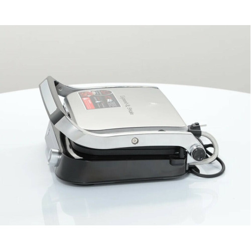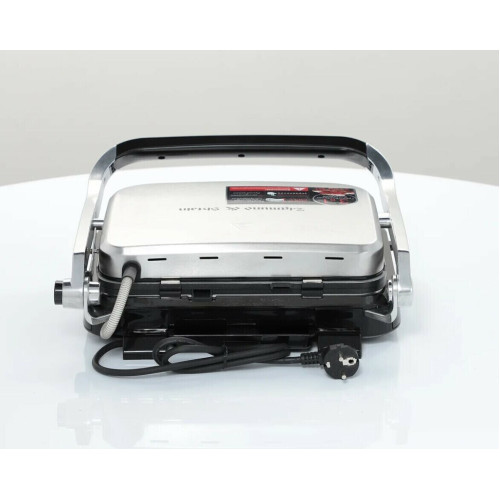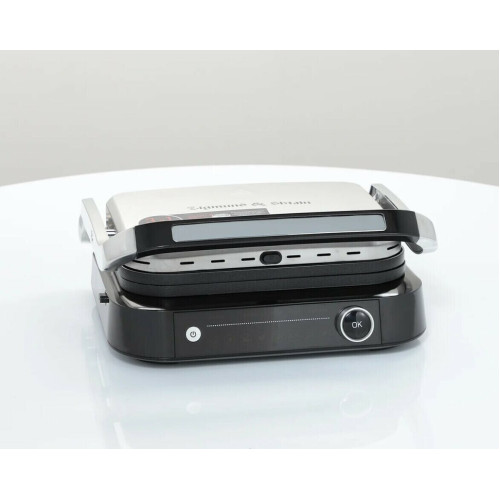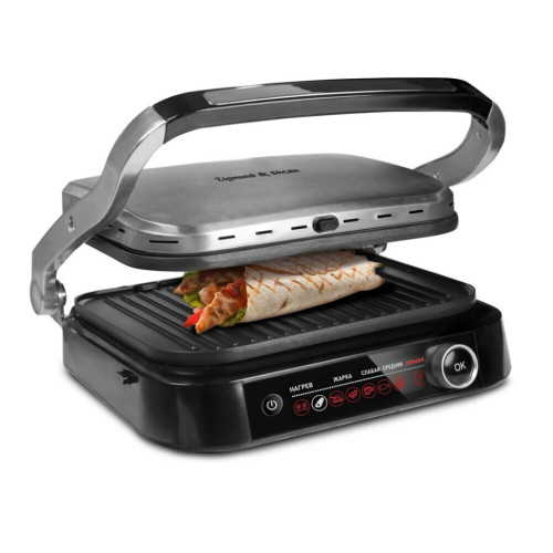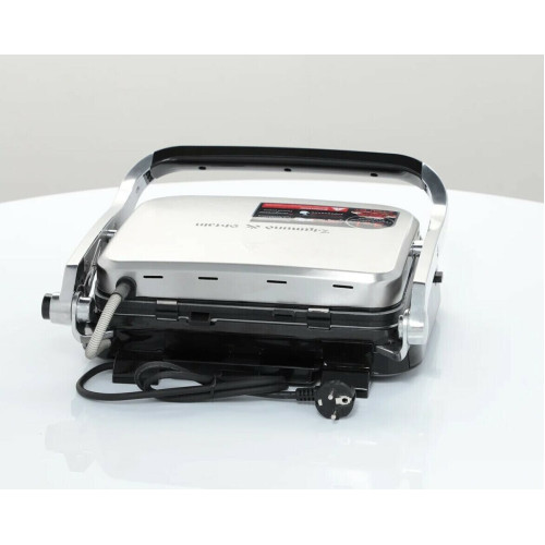 Электрогриль Zigmund & Shtain ZEG-928 – стильный внешний вид и удобное управление! Высокая мощность Высокая номинальная мощность гриля является идеальной в тех случаях, когда вы хотите качественно прожарить стейк или приготовить любые другие мясные блюда. Поддон для жира Жарочные поверхности, созданные для равномерной прожарки продуктов, снабжены специальными каналами, по которым жир стекает в легко моющийся поддон. Плавная регулировка нагрева Идеальная температура нагрева с обеих сторон обеспечит превосходный вкус и оптимальную степень прожарки. С этим электрогрилем вы c легкостью приготовите стейк с хрустящей золотистой корочкой снаружи и нежным розовым мясом внутри, а так же сочные запечённые овощи. Наслаждайтесь скоростью, простотой и высоким качеством процесса приготовления любимых блюд для здорового питания. Антипригарное покрытие С антипригарным покрытием рабочей поверхности вы легко переместите приготовленное блюдо с гриля и отмоете устройство после жарки одним движением влажной губки.