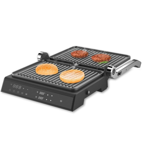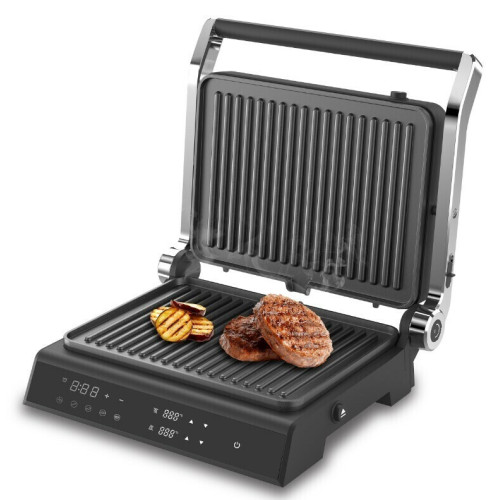 Контактный гриль Grillmeister ZEG-933 позволяет жарить или запекать различные продукты без добавления масла. Вы легко приготовите сочные стейки различной степени прожарки, нежную рыбу, полезные овощи-гриль, котлеты для бургеров, хрустящие тосты и сэндвичи, а также панини, шаурму, буррито с разнообразной начинкой и многое другое. Гриль Grillmeister ZEG-933 – это инновационный прибор с электронным управление и 5 автоматическими программами. Вы выбираете только вид продукта (программу), а верхняя панель автоматически отрегулируется в соответствии с толщиной продукта. При выборе одной из автоматических программ, время приготовления выставляется автоматически. Благодаря большой мощности 2000 Вт, гриль готовит быстро и качественно. Жарочные панели – литые, тяжелые, толщиной 1.7 см и с великолепной теплопроводностью. Они имеют прочное антипригарное покрытие, которое предотвращает подгорание и способствует образованию румяной хрустящей корочки. Рифленая поверхность создает при жарке аппетитные полоски гриля.
