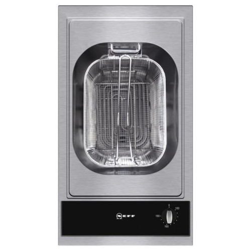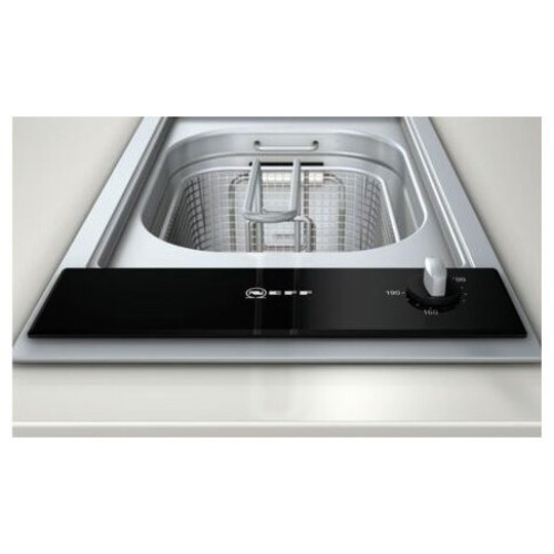 Встраиваемая электрическая фритюрница Neff — простой в использовании прибор с механическим управлением, который поможет быстро приготовить любимые блюда. Тепло, которое производит фритюрница, передаётся продукту через жир. При таком способе приготовления на продукте образуется вкусная корочка. Объём чаши рассчитан на 4 л фритюрного масла или 3.5 кг жира. Диапазон температур при жарении во фритюре составляет 100–190°C. Фритюрница оснащена индикатором нагрева, который светится, пока прибор нагревается. Если чаша не заполнена маслом или жиром хотя бы до нижней отметки, фритюрница автоматически отключается. Для лёгкой очистки чаши нагревательный элемент откидывается. Также предусмотрен кран для слива масла.