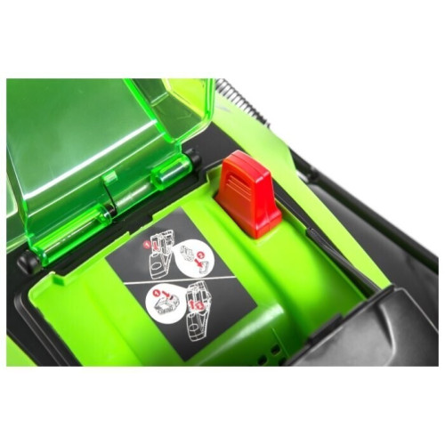 колесная газонокосилка электрический двигатель от аккумулятора (40 В) ширина / высота скашивания: 45 см / 20-70 мм выброс травы в мягкий травосборник , вбок, назад мульчирование