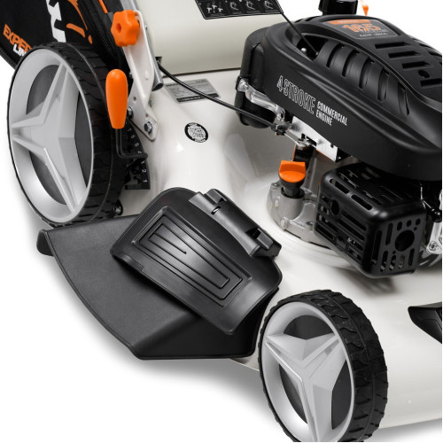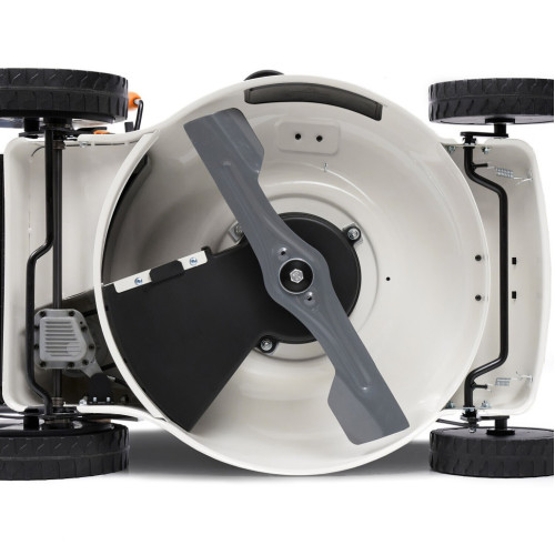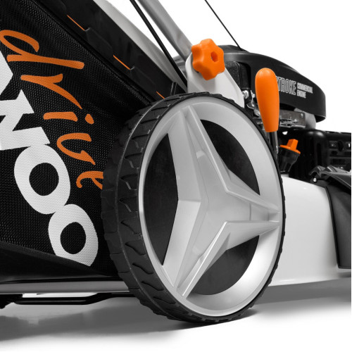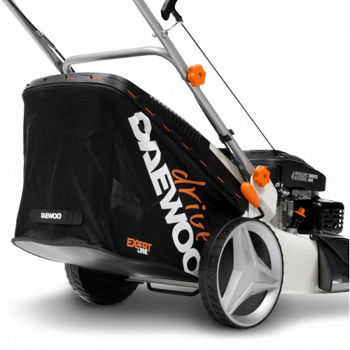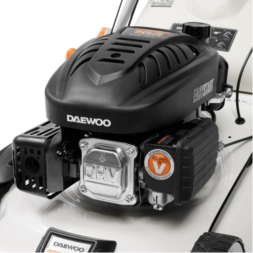 4-х тактный бензиновый двигатель DAEWOO V-series 165 Плавный ход и маневренность Прочный стальной корпус Складная конструкция Аэродинамический турбо нож Боковой выброс Мульчирование Центральная регулировка высоты среза Вместительный травосборник с индикатором заполнения Легкий старт двигателя
