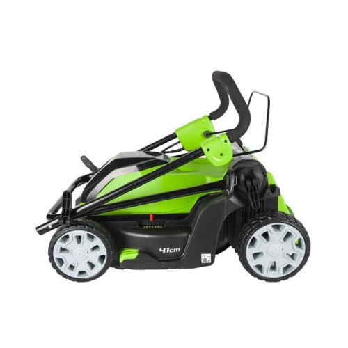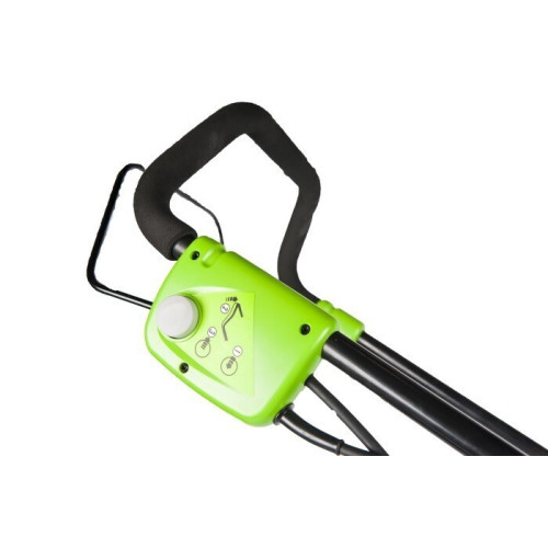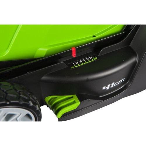 Газонокосилка электрическая GreenWorks GLM1241 подходит для покоса травы как на маленьких участках, так и на больших площадях. Косилку можно использовать с установленным травосборником объемом 50 л или без него. Газонокосилка оснащена функцией мульчирования почвы. Ширина покоса GreenWorks GLM1241 составляет 40 см, предусмотрен выбор высоты скашивания из 5 фиксированных значений. Электрическая газонокосилка GreenWorks GLM1241 собрана на стальной раме, сверху двигатель прикрывает пластиковый кожух. Ножи, выполненные из композитного материала, очень прочные и острые. Конструкция газонокосилки получилась легкая и функциональная - вес газонокосилки всего 15 кг.