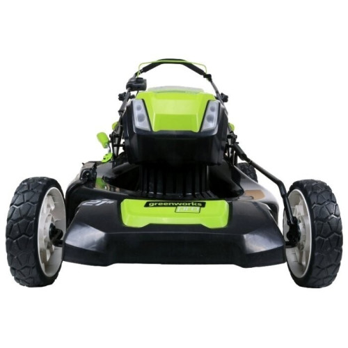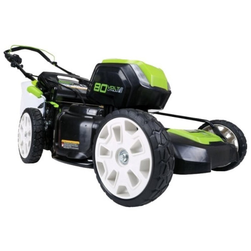 колесная газонокосилка электрический двигатель от аккумулятора (80 В) ширина / высота скашивания: 53 см / 25-80 мм выброс травы в мягкий травосборник , вбок, назад мульчирование вес: 27 кг уровень шума 96 дБ