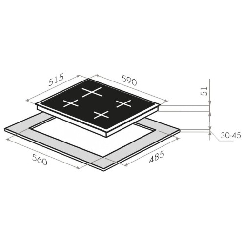 Панель имеет стандартные размеры (60x51 см) и подходит для монтажа в столешницу толщиной до 40 мм. Процесс установки прост и может быть выполнен квалифицированным специалистом. Гладкая поверхность из закаленного стекла и металлические элементы не имеют труднодоступных мест. Для поддержания безупречного вида достаточно протереть панель после остывания мягкой тканью с использованием специального средства для стеклокерамики.
