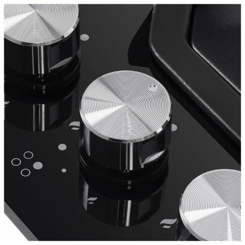 Панель выполнена в классическом черном цвете из закаленного стекла, которое не только придает кухне современный и строгий вид, но и отличается исключительной прочностью и устойчивостью к высоким температурам. Окантовка из нержавеющей стали дополняет образ, обеспечивая дополнительную защиту и долговечность. Большие и интуитивно понятные поворотные переключатели из металла гарантируют точный контроль пламени и легкость в уходе.