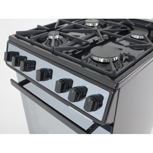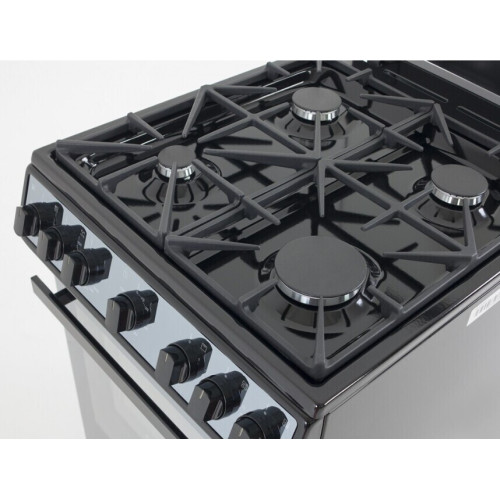Газовая нагревательная поверхность: * Новые  газовые  горелки    –  уменьшение  расхода  газа,  €CO-System * повышение эффективности нагрева, забота об окружающей среде * Электроподжиг  конфорок в поворотных ручках управления * Малая  горелка, усиленная  горелка + 2 нормальные * Чугунные решётки * Стеклянная  крышка Газовый духовой шкаф: * Увеличенный объём * Предохранение от утечки газа в духовом шкафу Газ-Контроль * Демонтируемая дверца со съёмными стёклами  (3 шт.) – холодный фронт * Таблица рецептов на внутренней стороне дверцы * Элегантная ручка дверцы с логотипом * 2 эмалированных противня различной  глубины * Алюминиевый противень * Хромированная многофункциональная решётка * Легковыдвигающийся посудный ящик на роликах, со стеклянным фронтом