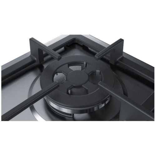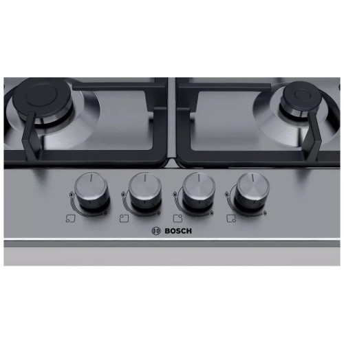 Встраиваемая газовая панель Bosch PGH6B5O90R – современный подход к обустройству вашей кухни. Она стильная, практичная, удобная. Готовим с удовольствием. Благодаря четырём конфоркам разного диаметра процесс приготовления еды будет быстрым. На одной из них можно жарить котлеты, в то время как другая будет задействована для приготовления гарнира. Чугунные решётки отличаются высокой прочностью и прослужат долго. Варочная панель покрыта эмалью. Материал гигиеничен и прост в уходе. Двухрядное пламя конфорки позволит быстро довести воду до кипения, экономя время. Можно использовать специальную сковороду с выпуклым дном. Функция «Минимальный огонь» идеальна для процесса тушения. Конфорки удобно зажигаются в автоматическом режиме после поворота выключателя, традиционно расположенного спереди. Спички и зажигалки вам не понадобятся. Прорезиненные уплотнители обеспечивают безопасное использование. Система «газ-контроль» сразу прекратит подачу топлива, если пламя неожиданно погаснет.