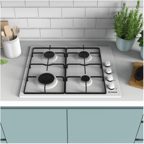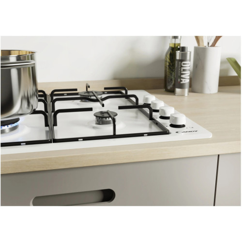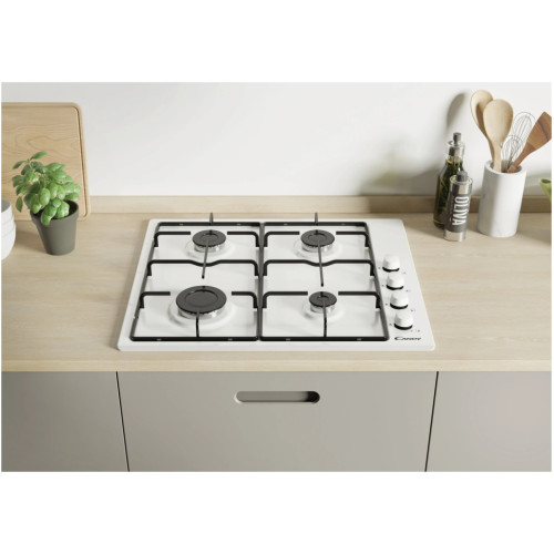 Тип панели - газовая варочная поверхность | Установка - независимая | Габариты (ШхГ) - 59.5 x 51 см | Размеры для встраивания (ШхГ) - 56 x 48 см | Номинальная мощность - 7.2 кВт | Материал панели - эмаль | Всего конфорок - 4 | Газовых конфорок - 4 | Экспресс-конфорок - 1 | Расположение панели - сбоку | Переключатели - поворотные | Электроподжиг - есть, автоматический | Газ-контроль конфорок - есть | Цвет - белый | Дополнительная информация - в комплекте форсунки для газа G30 | Чугунные решетки - нет