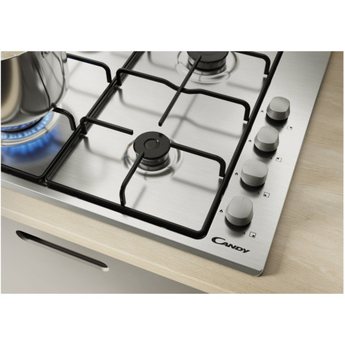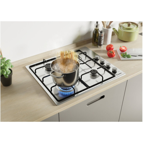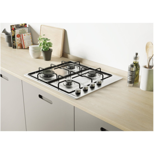 Газовая варочная поверхность 60 см. Цвет: Нерж сталь. Цвет ручек: серебро. Газ-контроль. Автоматический электроподжиг. 4 конфорки: быстрая, 2-е полубыстрые и вспомогательная. 2 эмалированных решетки. Цельноштампованная поверхность. Комплект форсунорк для балонного газа. Мощность 7,2 кВт