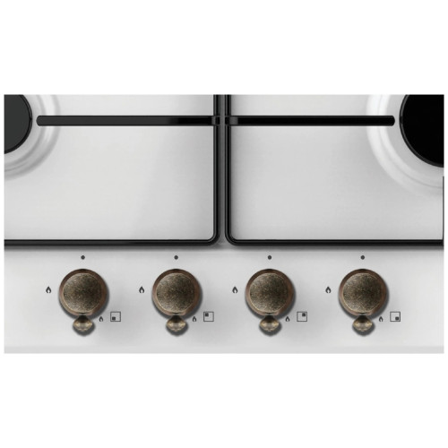 Тип панели - газовая варочная поверхность | Установка - независимая | Габариты (ШхГ) - 59.5 x 51 см | Размеры для встраивания (ШхГ) - 56 x 48 см | Материал панели - эмаль | Всего конфорок - 4 | Газовых конфорок - 4 | Экспресс-конфорок - 1 | Конфорок газовых "Двойная корона" - 1 | Конфорка Coup de feu - есть | Расположение панели - спереди | Переключатели - поворотные | Электроподжиг - есть, автоматический | Газ-контроль конфорок - есть | Цвет - белый | Чугунные решетки - нет