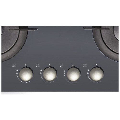 Газовая варочная поверхность, Газ на стекле. 60 сантиметров. Цвет: черный с серебристыми ручками. Газ-контроль. Автоматический электроподжиг. 1 скоростная, 2 полускоростные конфорки, 1 вспомогательная. 4 чугунные держателя для посуды. Комплект форсунорк для балонного газа. Мощность 7, 0 кВт , Страна происхождения Турция