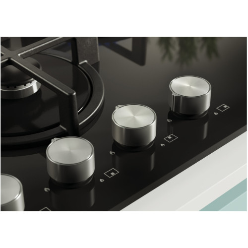Газ на стекле. Цвет: Черный. Ширина: 60 см. 4 газовых конфорки. Автоматический электроподжиг. 3 решетки. Предохранительный клапан Sicur Flame (автоматически перекрывает подачу газа, если гаснет пламя конфорки) , 2 быстрые конфорки 2,5 кВт, 2 полубыстрых конфорки 1,75 кВт.