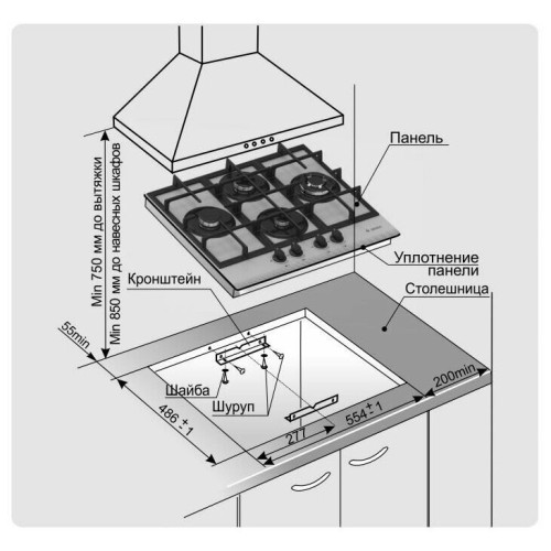 Ширина для встраивания (см) 55,4