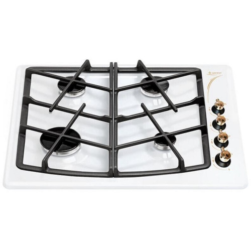 Газовая варочная поверхность Gefest СН 1211 К62 располагает четырьмя конфорками и чугунными решетками оригинального дизайна, которые служат для размещения сковород и кастрюль. Продуманный дизайн панели прибора дополнен переключателями механической системы управления конфорками. Система электроподжига, совмещенная с этими регуляторами, позволяет быстро и без помощи спичек разжечь огонь в нужной конфорке. Конфорки варочной поверхности Gefest СН 1211 К62 имеют разные размеры и назначение: одна отличается большей мощностью, одна является небольшой, две остальные имеют среднюю мощность в 1,75 кВт. И конфорки, и органы механического управления находятся на гладкой панели из эмалированной стали, выполненной в нейтральном и привлекательном белом цвете. Варочная поверхность станет удачным приобретением для домашней кухни.