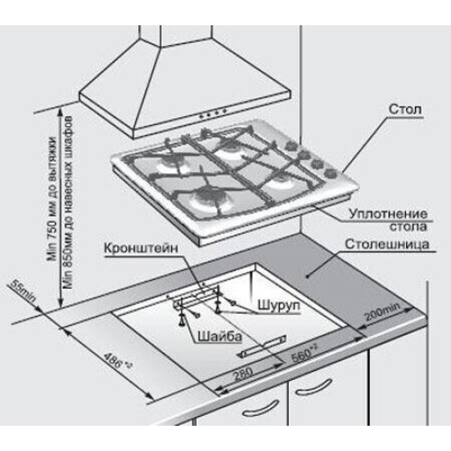 Ширина для встраивания (см) 56