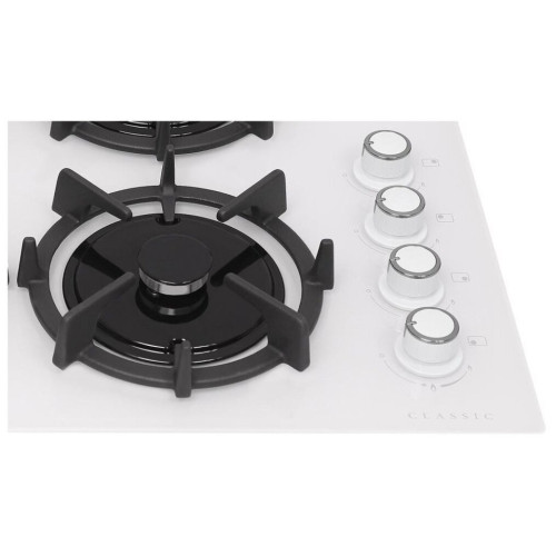 Газовая варочная поверхность GEFEST СВН 2230 К11 состоит из 4 конфорок, расположенных на белой поверхности из закаленного стекла. Каждая горелка оснащена индивидуальной чугунной решеткой, которая повторяет ее форму. Модель обладает 2 конфорками стандартной мощности, 1 конфоркой увеличенной мощности и 1 маленькой экономичной конфоркой. Все горелки оснащены опцией газ-контроля, что делает использования поверхности для приготовления пищи абсолютно безопасным. Варочная панель управляется посредством поворотных переключателей, в которые в свою очередь встроен электроподжиг. Управление варочной поверхностью располагается сбоку от горелок. Устройство обладает встроенной функцией «Малое пламя».