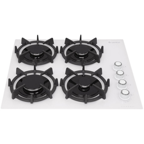 Газовая варочная поверхность GEFEST СВН 2230 К11 состоит из 4 конфорок, расположенных на белой поверхности из закаленного стекла. Каждая горелка оснащена индивидуальной чугунной решеткой, которая повторяет ее форму. Модель обладает 2 конфорками стандартной мощности, 1 конфоркой увеличенной мощности и 1 маленькой экономичной конфоркой. Все горелки оснащены опцией газ-контроля, что делает использования поверхности для приготовления пищи абсолютно безопасным. Варочная панель управляется посредством поворотных переключателей, в которые в свою очередь встроен электроподжиг. Управление варочной поверхностью располагается сбоку от горелок. Устройство обладает встроенной функцией «Малое пламя».