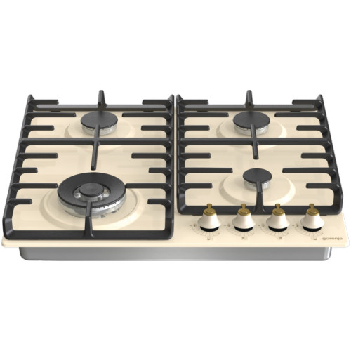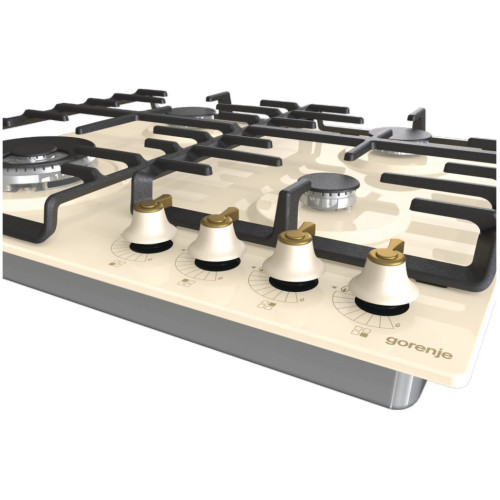Встраиваемая газовая варочная панель Gorenje GW642CLI удобная модель шириной 60 см. Благодаря увеличенному расстоянию между конфорками вы сможете задействовать их все одновременно и использовать даже большие кастрюли и сковороды посуда не будет сталкиваться бортами.Надёжной опорой для посуды служат чугунные решётки. С ними вы можете быть уверены, что даже тяжёлая утварь всегда будет стоять устойчиво. Держатели не деформируются и не боятся длительного воздействия высоких температур.На панели управления привычные поворотные регуляторы. В них встроен автоматический электроподжиг, так что спички вам не потребуются. Если у вас что-то убежит и погасит пламя, утечки не случится. За безопасность отвечают предохранители, которые сразу же прервут подачу газа.