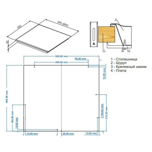 Ширина для встраивания (см) 56