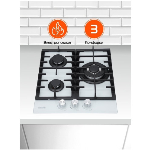 Газовая варочная поверхность HIBERG VM 4534 W выполнена из закаленного стекла в белом цвете, оснащена 3 конфорками с функциями: автоматический «электророзжиг» и «газ-контроль». На рабочей поверхности располагаются разные по диаметру и мощности пламени конфорки. WOK конфорка с тройным рядом пламени и мощностью 3,4 кВт позволяет ускорить закипание воды и использовать интенсивную скорость прожарки. Мощность газовых горелок можно регулировать с помощью металлических поворотных переключателей, которые находятся на фронтальной панели управления. Функция «электророзжиг» встроена в ручки, достаточно просто нажать и повернуть регулятор – конфорка включится автоматически. За безопасность подачи газа отвечает система «Газ-контроль», которая обезопасит пользователя от вероятности воспламенения при утечке газа. Поверх конфорок установлены массивные чугунные решетки, они отличаются особой прочностью, устойчивостью к перепадам температуры, а также удобны в уходе. Особенности и преимущества: - 3 конфорки; - WOK конфорка; - поверхность из закаленного стекла; - электророзжиг; - газ-контроль; - чугунные решетки; - цвет: белый. Варочные поверхности от HIBERG - это премиальное качество, комфорт эксплуатации и высокая безопасность!