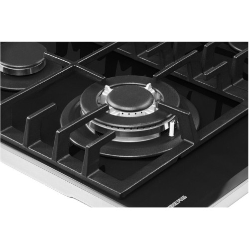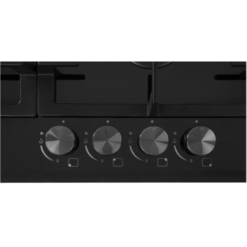 тип панели: газовая, количество конфорок: 4, материал панели: закаленное стекло, установка: независимая, переключатели: поворотные, ширина: 58.40 см, глубина: 51 см, специальные конфорки: Тройная корона, трехконтурная, газ-контроль конфорок