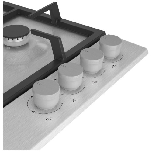 Газовая варочная панель Hotpoint цвета нержавеющей стали - это премиальный дизайн и максимальное удобство эксплуатации. Встроенный в ручки электроподжиг делает старт процесса приготовления ваших любимых блюд простым и безопасным. Прочные чугунные решетки долговечны, устойчивы к высоким температурам и идеально распределяют тепло. Их простой и элегантный дизайн обеспечивает максимальную устойчивость посуды. Высокоэффективные конфорки позволяют быстрее нагреть воду или подогреть пищу на сковороде. Газовая варочная панель Hotpoint HGMT 641 W IX с технологией газ-контроля исключает возможность утечки газа: как только пламя конфорки гаснет, подача топлива автоматически прекращается.