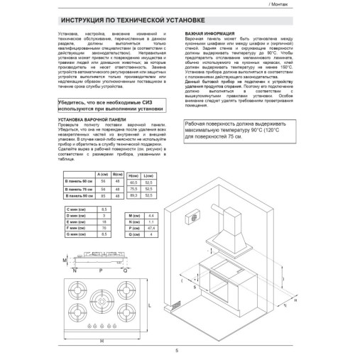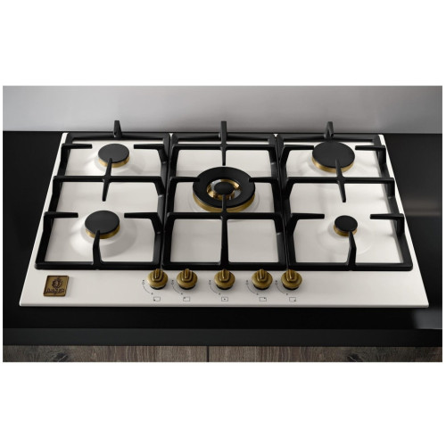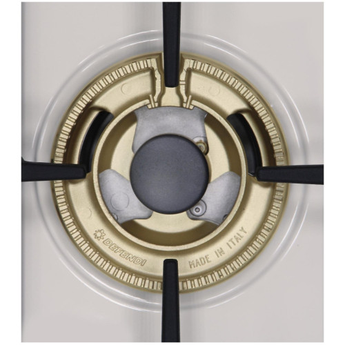 Изысканная варочная поверхность, созданная руками итальянских мастеров, дополнит Ваш интерьер и сделает приготовление любимых блюд более комфортным. Основные технологические особенности: Итальянские горелки Defendi. Современная конструкция конфорки позволяет экономить потребление газа. Благодаря двойному кольцу пламени повышается производительность варочной поверхности, а подогрев и приготовление блюд происходят более равномерно. Тройная WOK горелка мощностью 4 кВт позволяет готовить любимые блюда высокой кухни правильно и быстро. Газ-контроль обеспечивает полную безопасность использования. Поджег в ручке гарантирует дополнительную безопасность при использовании газовой поверхности. За счёт данного механизма семьи с детьми могут быть уверены, что маленькие дети с низкой вероятностью смогут самостоятельно включить плиту. Основные дизайнерские особенности: Чугунные решетки с амортизаторами. Чугун устойчив к деформации от высоких температур и хорошо очищается от застывшего жира и нагара. Благодаря амортизаторам поверхность находится в неподвижном состоянии, а на ее поверхности без труда размещается даже объемная и тяжелая посуда. Объёмное лого и матовые колпачки горелок делают панель более привлекательной визуально и позволяют грамотно расставить акценты, вписывая панель в имеющийся интерьер кухни.