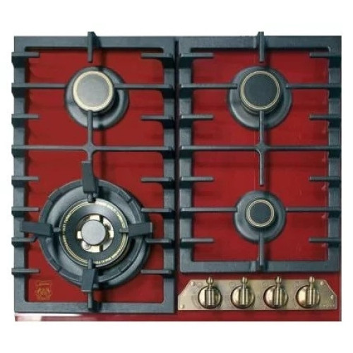 Тип поверхности: варочная; Материал поверхности: закаленное стекло; Электроподжиг: да; Газконтроль: да; Материал решеток: чугун; Таймер: нет; Переключатели: поворотные; Стиль: Retro; Габариты (ШхГ): 58х51 см; Цвет: красный; ;