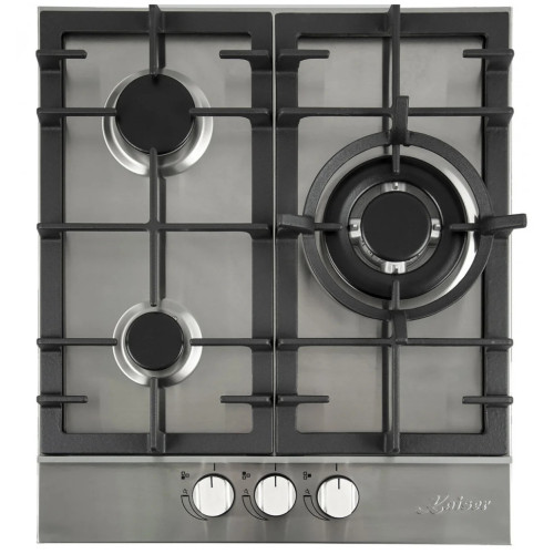 Классическая газовая варочная поверхность, принадлежащая к среднему ценовому диапазону. Как основное достоинство модели производители позиционируют уменьшенные размеры, что позволяет решить некоторые проблемы при оснащении бытовой техникой небольших по площади кухонь малогабаритных квартир в многоэтажках старой планировки — габариты изделия составляют 45x51 см. Хотя варочная поверхность Kaiser KG 4350 Turbo имеет всего три конфорки, ее производительность при разумной эксплуатации весьма велика. Целесообразно на начальной стадии приготовления пищи использовать мощную турбоконфорку с несколькими рядами пламени, обеспечивающую максимально быстрый нагрев, а потом переставлять посуду на горелку обычной конструкции и подстраивать подачу топлива поворотными ручками. Для удобства использования закрывающая газораспределительный механизм крышка изготовлена из неподдающейся коррозии нержавеющей стали, а для запала применяются высекаемые встроенными разрядниками искры. В соответствии с требованиями современных стандартов для обеспечения безопасности предусмотрена функция газ-контроль.