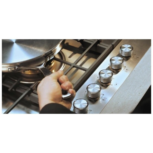 Газовая варочная поверхность KHMP5 77510 с простым и гармоничным дизайном очень практична и удобна в использовании. Стальная варочная поверхность с 5 конфорками, в том числе мощной профессиональной двухконтурной конфоркой мощностью 6 кВт гарантирует неизменно превосходные результаты. Конфорки с концентрическими рядами сопел позволяют обеспечивать мощный, равномерный и контролируемый нагрев больших поверхностей. Управление с двойным клапаном обеспечивает максимальную гибкость, позволяя увеличивать площадь пламени в случае посуды с широким днищем. Благодаря инновационному нанотехнологическому покрытию iXelium за поверхностью легко ухаживать. Покрытие предотвращает прилипание пищи к поверхности, защищая ее от пятен, царапин и пожелтения. Она создана для тех, кто ценит дизайн, но не любит чистить: мягкая губка и деликатное моющее средство - вот все, что необходимо для удаления с любых загрязнений. В результате варочная поверхность будет сохранять свою красоту и блеск с течением времени. С мытьем чугунных решеток прекрасно справится посудомоечная машина.