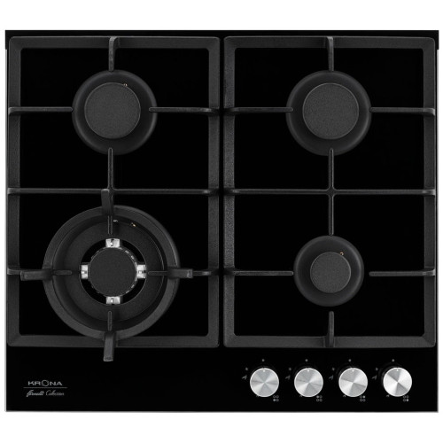 Стильная газовая варочная поверхность на 60 см выполнена из прочного термостойкого стекла. Для удобства пользования в модели предусмотрена экспресс-конфорка с тройным пламенем, а дополнительно в комплекте идут адаптер для WOK-посуды и жиклеры для сжиженного газа.Функции автоматического электроподжига и "Газ-контроль" обеспечат безопасность пользования газовой варочной панелью ALMA.