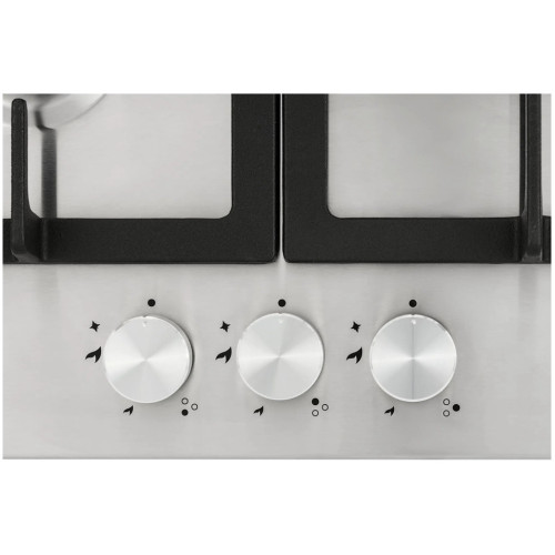 Поверхность из нержавеющей стали на протяжении многих лет сохраняет эстетичность внешнего вида, поскольку легко очищается от загрязнений. Кухонный прибор имеет механический тип управления. Для переключения уровней нагрева, выбора функций используются поворотные переключатели. Простая система контроля за прибором делает его более универсальным, разобраться сможет абсолютно каждый. Удобное расположение 3-х конфорок, которые предполагают возможность использования любой посуды для приготовления блюд. Мощность одной 1 кВт, а двух других — 1,75 и 3,8 киловатт. Одна из них обладает конструкцией «Тройная корона» и оборудована подставкой под вок-сковородки. Эта экспресс-конфорка она имеет три кольца пламени и предназначена для наиболее интенсивного нагревания. С помощью нее вы сможете создать атмосферу ресторана на домашней кухни и готовить блюда азиатской кухни в специальных сковородах, использовать казан и другую посуду с толстыми стенками. Функция электроподжига избавляет Вас от опасности обжечься, слишком близко протянув руку к конфорке. Пламя загорается простым поворотом переключателя, без использования спичек и зажигалок, что гарантирует безопасную и комфортную эксплуатацию. Газ-контроль подразумевает, что благодаря специальным датчику и клапану, при случайном угасании огня, подача газа мгновенно блокируется и он перестает поступать — утечка предотвращена.