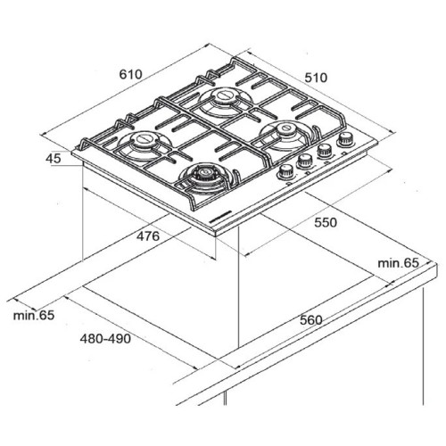 Черная газовая варочная поверхность FG 65 B - один из оптимальных вариантов для дополнения интерьера High-Tech. Изготовленная из жаростойкого стекла и оснащенная стильной фурнитурой, данная модель прекрасно впишется в общую стилистику. Стоит отметить и технологичность плиты: 4 разные и по диаметру, и по мощности конфорки; возможность приготовления пищи в специальной WOK-посуде; решетки из чугуна причудливого дизайна; наличие электроподжига; контроль автоотключения подачи газа при необходимости. Встраиваемая варочная панель FG 65 B не займет много места и обеспечит максимум производительности. КОНФОРКИ SABAF В наших варочных панелях установлены конфорки Sabaf. Sabaf это - ведущий мировой производитель газовых конфорок. Многолетний опыт и технологии, обеспечивают гарантию безопасности и долговечности использования. ЗАКАЛЕННОЕ СТЕКЛО Варочная поверхность из закаленного стекла, имеет высокую прочность и срок службы, также гарантирует легкую очистку от грязи и продуктов кипения. Внешний вид закаленного стекла подчеркнет столешницу из любых материалов и идеально впишется в вашу кухню. ЧУГУННАЯ РЕШЕТКА Решетка изготовлена из чугуна с оригинальным дизайном и практичной формой. Фиксацию решетки на варочной панели обеспечивает ребро жесткости, за счет специальных креплений.