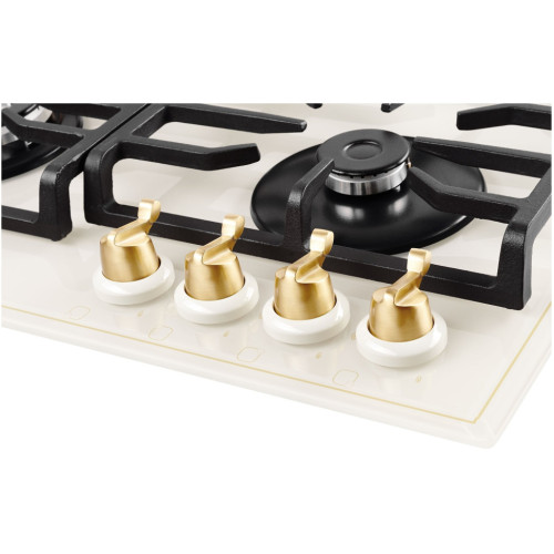 Сложно подобрать подходящую плиту для кухонного помещения, оформленного в стиле Classic? Одной из наиболее удачных моделей является газовая варочная панель FQ 602 C теплого бежевого тона, выполненная из специального жаропрочного стекла и дополненная бронзовой фурнитурой. Базовые характеристики прибора: - 4 конфорки бренда Sabaf, разные по мощности и диаметру; - наличие специальной горелки для WOK-посуды; - прочные чугунные перегородки; - функция автоматического электроподжига; - режим газ-контроля. Готовить со встраиваемой варочной поверхностью от немецкого бренда KUPPERSBERG просто и быстро. Убедитесь в этом сами! КОНФОРКИ SABAF В наших варочных панелях установлены конфорки Sabaf. Sabaf это - ведущий мировой производитель газовых конфорок. Многолетний опыт и технологии, обеспечивают гарантию безопасности и долговечности использования. ЗАКАЛЕННОЕ СТЕКЛО Варочная поверхность из закаленного стекла, имеет высокую прочность и срок службы, также гарантирует легкую очистку от грязи и продуктов кипения. Внешний вид закаленного стекла подчеркнет столешницу из любых материалов и идеально впишется в вашу кухню. ЧУГУННАЯ РЕШЕТКА Решетка изготовлена из чугуна с оригинальным дизайном и практичной формой. Фиксацию решетки на варочной панели обеспечивает ребро жесткости, за счет специальных креплений. МЕТАЛЛИЧЕСКАЯ ФУРНИТУРА Материал ручек управления из металла ручной работы. Продлевается срок службы, благодаря надежности металла и индивидуального подхода мастера к каждому изделию. Благородный вид металла подчеркивает стильный дизайн варочной поверхности.