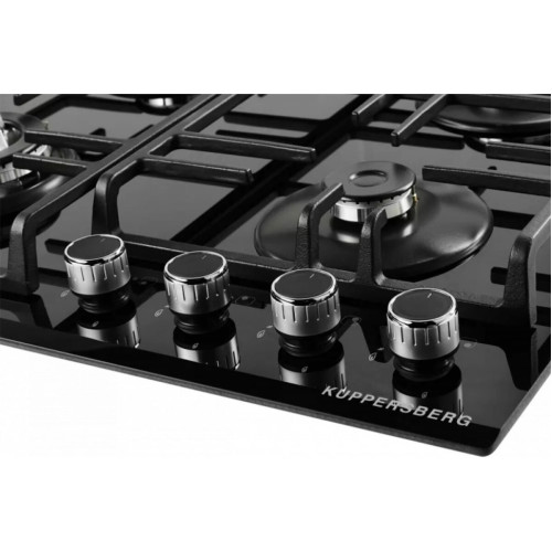Черная газовая варочная панель FQ 62 B станет логичным дополнением интерьера кухни в хайтек-стиле. Изготовлена такая плита из качественного закаленного стекла, а оригинальные переключатели из металла черно-серебристого оттенка смотрятся вполне достойно. Решетки из чугуна фиксируются специальными креплениями. Очистка прибора не вызывает затруднений. Прибор демонстрирует множество важных характеристик: - 4 качественные конфорки бренда Sabaf; - для WOK-посуды предусмотрена отдельная горелка; электроподжиг; - встроенный датчик контроля подачи газа; - имеются форсунки под сжиженный газ. Встраиваемая варочная поверхность немецкого бренда KUPPERSBERG справится с любыми задачами быстро и легко. КОНФОРКИ SABAF В наших варочных панелях установлены конфорки Sabaf. Sabaf это - ведущий мировой производитель газовых конфорок. Многолетний опыт и технологии, обеспечивают гарантию безопасности и долговечности использования. ЗАКАЛЕННОЕ СТЕКЛО Варочная поверхность из закаленного стекла, имеет высокую прочность и срок службы, также гарантирует легкую очистку от грязи и продуктов кипения. Внешний вид закаленного стекла подчеркнет столешницу из любых материалов и идеально впишется в вашу кухню. ЧУГУННАЯ РЕШЕТКА Решетка изготовлена из чугуна с оригинальным дизайном и практичной формой. Фиксацию решетки на варочной панели обеспечивает ребро жесткости, за счет специальных креплений. МЕТАЛЛИЧЕСКАЯ ФУРНИТУРА Материал ручек управления из металла ручной работы. Продлевается срок службы, благодаря надежности металла и индивидуального подхода мастера к каждому изделию. Благородный вид металла подчеркивает стильный дизайн варочной поверхности.