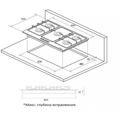 | Глубина для встраивания (см) | 48 |