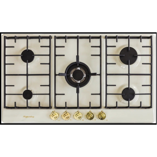 Дизайн классической кухни прекрасно дополнит стильная газовая варочная поверхность FV9TGRZ. Отличительные характеристики модели: - пять мощных конфорок; - конфорка типа WOK для особого формата посуды; - прочные секции решеток из чугуна; - наличие функции электроподжига; - контроль подачи газа; - наличие специальной подставки для турки. Данная модель изготовлена из многослойной эмали и оснащена элегантными бронзовыми металлическими переключателями. КОНФОРКИ SABAF В наших варочных панелях установлены конфорки Sabaf. Sabaf это - ведущий мировой производитель газовых конфорок. Многолетний опыт и технологии, обеспечивают гарантию безопасности и долговечности использования. АНГЛИЙСКОЕ ПОКРЫТИЕ Варочные поверхности покрытые эмалью имеют глубину цвета, а также приятные и гладкие на ощупь. Современные технологии эмали позволяют создать материал стойкий к нагреву и устойчивый к износу и по этим причинам эмалированные варочные поверхности Kuppersberg, не только красивы, но и практичны в применении и уходе. ЧУГУННАЯ РЕШЕТКА Решетка изготовлена из чугуна с оригинальным дизайном и практичной формой. Фиксацию решетки на варочной панели обеспечивает ребро жесткости, за счет специальных креплений. МЕТАЛЛИЧЕСКАЯ ФУРНИТУРА Материал ручек управления из металла ручной работы. Продлевается срок службы, благодаря надежности металла и индивидуального подхода мастера к каждому изделию. Благородный вид металла подчеркивает стильный дизайн варочной поверхности.