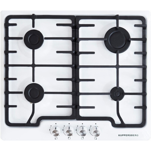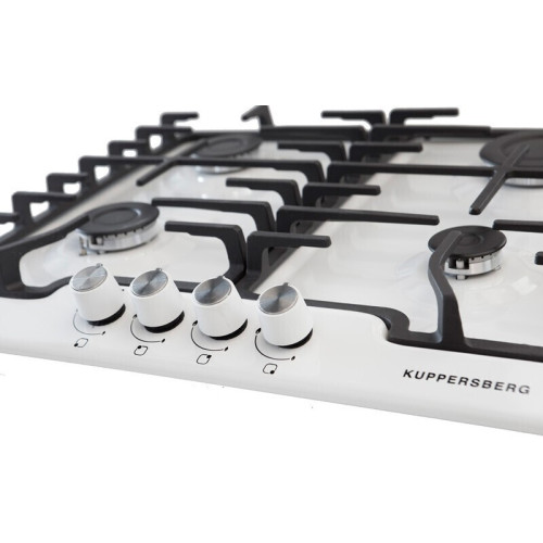 Варочная панель Kuppersberg TS 61 W белого цвета выполнена из эмалированной стали. Массивные чугунные решетки хорошо удерживают посуду. Прибор оснащен 4 конфорками, одна из которых повышенной мощности — 3 кВт. Автоматический электроподжиг и газ-контроль делают прибор удобным и безопасным в эксплуатации. Теперь вы можете не переживать о достаточной безопасности готовки - все газовые варочные панели Kuppersberg оснащаются системой «Газ-контроль». Наверняка многие сталкивались с проблемой, когда сквозняк на кухне гасит огонь в горелках. Или они тухнут, когда «сбегает» молоко. Какова бы ни была причина, утечка в современных поверхностях Куперсберг уже невозможна, потому что газ-контроль дает стопроцентную гарантию безопасности. Принцип работы этой системы довольно прост, но эффективен. В каждую горелку варочной панели встраиваются термопары, которые контролируют наличие пламени. А в канале газовой подачи установлен электромагнитный клапан, который обычно находится в разомкнутом состоянии. Пока конфорки горят, газ подается. Но как только огонь гаснет, термопара остывает, и клапан мгновенно закрывается. Следовательно, никакой утечки не происходит.