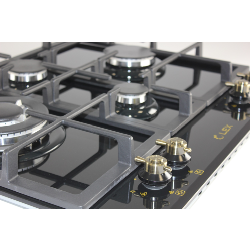 Описание Материал поверхности: Закаленное стекло Управление Механическое Мощность 9250 Вт Конфорка Wok 1 х 3500 Вт Конфорка повышенной мощности 1 х 3000 Вт Конфорка быстрого нагрева 1 х 1750 Вт Дополнительная конфорка 1 х 1000 Вт Размер для встраивания (ВхШхГ) 560х480 мм Вес без упаковки 11 кг Вес в упаковке 13 кг Уникальная варочная панель от известного итальянского бренда LEX изготовлена по специальной технологии Газ-на-стекле, которая позволяет применять в качестве материала рабочей зоны термостойкую стеклокерамику. Массивная чугунная решетка разделяется на 3 части, что позволяет легко мыть ее как вручную, так и при помощи посудомоечной машины. Специальное размещение конфорок дает возможность максимально эффективно использовать рабочую зону при сохранении компактных габаритов 51*60*9,5 см. Модель выполнена в элегантном черном цвете и предназначена для установки в кухонные гарнитуры как самостоятельно, так и в паре с духовым шкафом, что стало возможным из-за реализации независимого типа подключения. Управление мощностью горелок осуществляется при помощи поворотных переключателей, оборудованных автоматической системой электророзжига. Пользователю доступно 4 конфорки: 1 экономичная на 1000 Вт, 1 конфорка быстрого нагрева на 1750 Вт, 1 повышенной мощности в 3000 Вт и 1 специальная конфорка WOK на 3500 Вт, предназначенная для приготовления блюд в одноименной посуде.