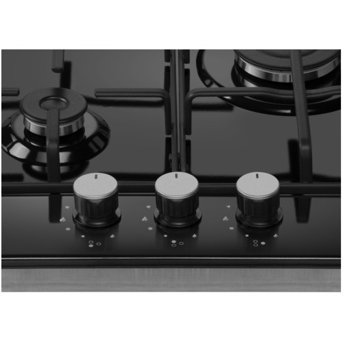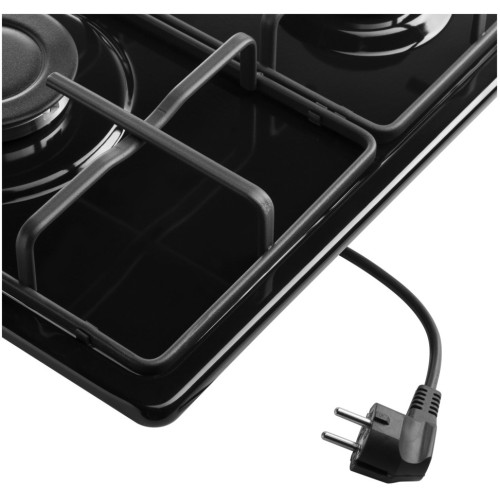 Компактная встраиваемая газовая варочная панель шириной 45 см может работать от магистрального газа и газа в баллоне (тип G30), для этого достаточно поставить специальные жиклеры, находящиеся в комплекте. Панель выполнена из высококачественной нержавеющей стали с эмалевым покрытием черного цвета. Три стандартные конфорки разного диаметра мощностью 1000 Вт, 1700 Вт и 2600 Вт. Управление подачи газа и электроподжиг конфорок происходит с помощью поворотных регуляторов - ручек из высокопрочного термостойкого пластика. Для простоты использования около каждой ручки нанесены информационные изображения: используемая конфорка, подача газа выключена, электроподжиг, максимальное пламя и минимальное пламя. Эмалированные решетки расположены вплотную друг к другу, образуя единую рабочую зону. Благодаря этому, вы можете передвинуть любую посуду с конфорки на конфорку не поднимая ее.