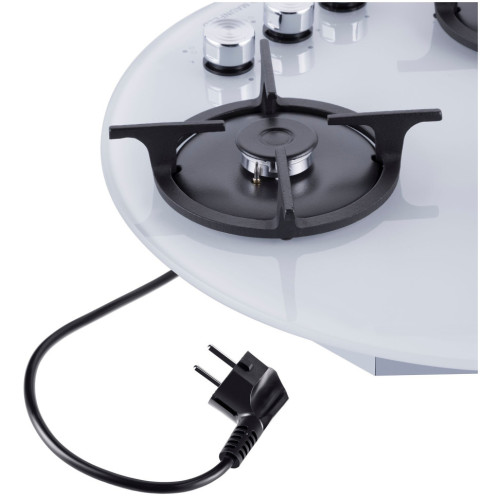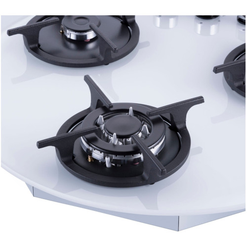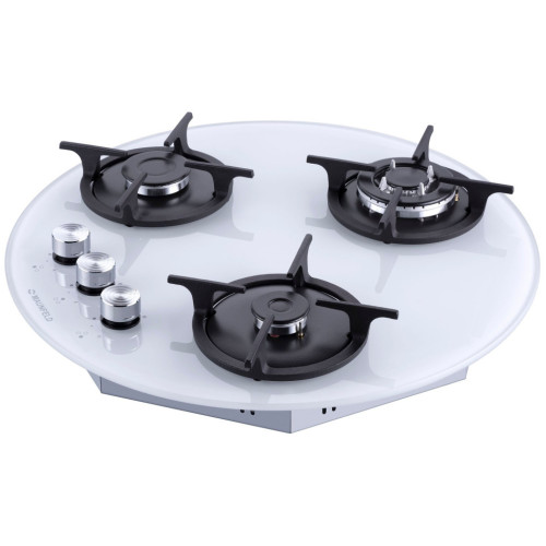 3 газовые итальянские конфорки SABAF: одна быстрая WOK конфорка 3000W, две полу быстрых конфорки 1700W. Фронтальное управление, 3 круглых металлических поворотных переключателя (D35мм), автоматический электроподжиг под ручкой управления, возможность работы от магистрального газа и газа в баллоне (тип G30). Особенности: Чугунные решетки, газ-контроль, электроподжиг автоматический, WOK-горелка, тяжелые цельнометаллические полнотелые ручки управления, итальянские горелки SABAF, возможность работы от магистрального газа и газа в баллоне (тип G30). В комплекте: 3 жиклера для баллонного газа, инструкция по эксплуатации на русском языке.