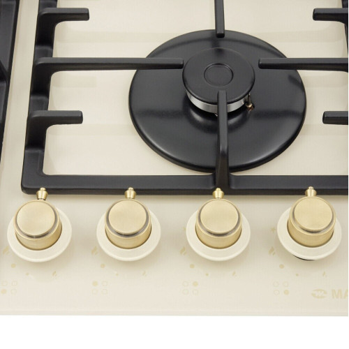 Технические характеристики: 4 газовые итальянские конфорки: 3000, 1700, 1700, 1000 Вт. Фронтальное управление, 4 поворотных переключателя, автоматический электроподжиг под ручкой управления, возможность работы от магистрального газа и газа в балоне (тип G30). Особенности: Чугунные решетки, газ-контроль, электроподжиг автоматический, WOK-горелка, тяжелые цельнометаллические полнотелые рустикальные ручки управления, итальянские горелки «SABAF», жиклеры Sourdillion (Франция), толщина стекла 8 мм., возможность работы от магистрального газа и газа в баллоне (тип G30)