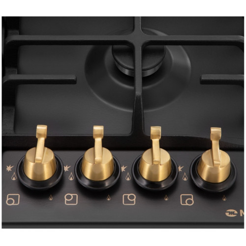 Встраиваемая газовая варочная панель - это идеальное сочетание функциональности и дизайна. Может работать как от магистрального газа, так и от газа в баллоне (тип G30). Для этого достаточно поставить специальные жиклеры французской фирмы SOURDILLON, находящиеся в комплекте. Панель выполнена из нержавеющей стали, покрытой термостойкой прочной эмалью черного цвета. В данной модели установлены высококачественные итальянские горелки SABAF. Три стандартные конфорки мощностью 1000 Вт, 1750 Вт, 1750 Вт и одна свермощная WOK-конфорка с двойным пламенем мощностью 3800 Вт спроектированы таким образом, что огонь не перегревает ни чугунные решетки, ни ручки управления. Регулирование подачи газа и электроподжиг конфорок производится с помощью поворотных регуляторов - элегантных цельнометаллических ручек цвета "Античное серебро". Для простоты использования около каждой ручки нанесены пиктограммы: используемая конфорка, подача газа выключена, электроподжиг, максимальное пламя и минимальное пламя. Две чугунные решетки теперь имеют крестообразные соединения над конфорками, что позволяет готовить в посуде разного диаметра без специальных подставок. Решетки расположены вплотную друг к другу, образуя единую рабочую зону. Благодаря этому вы можете легко передвигать посуду с конфорки на конфорку, не поднимая ее. Система газ-контроля надежно защищает бытовой прибор от утечек газа при неожиданном затухании конфорки.