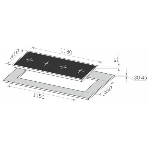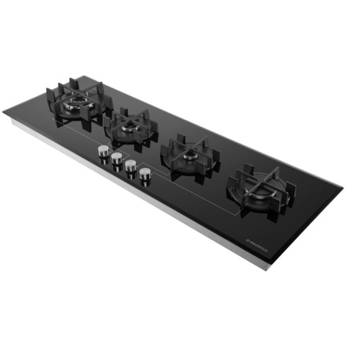 Суперстильная встраиваемая газовая варочная панель с оригинальным однорядным расположением конфорок. Выполнена из термостойкого стекла от немецкого производителя SCHOTT с фацетом. Укомплектована высококачественными итальянскими горелками SABAF. Особенности: Стильная 4-х конфорочная встраиваемая газовая варочная панель шириной 120 см. В отличие от классических панелей, имеющих почти квадратную форму, эта панель выполнены в виде вытянутого прямоугольника шириной в одну конфорку. Это позволяет устанавливать ее на узких столешницах или использовать для подчеркивания неординарного дизайна вашей кухни. Работает от магистрального газа и газа в баллоне (тип G30). Для этого достаточно поставить специальные жиклеры французской фирмы Sourdillion. Панель выполнена из термостойкого стекла черного цвета толщиной 8 мм немецкого производителя SCHOTT с фацетом по всему периметру. В данной модели установлены высококачественные итальянские горелки SABAF. Три стандартные конфорки разного диаметра с мощностью 1000 Вт, 1750 Вт, 1750 Вт и одна WOK-конфорка с двойным пламенем мощностью 3000 Вт. Регулирование подачи газа и электоподжиг конфорок происходит с помощью поворотных цельнометаллических ручек. Чугунные решетки также эксклюзивного дизайна с дополнительной прокладкой для повышенной устойчивости и предотвращения появления царапин на стеклянной поверхности. Система газ-контроля надежно защищает бытовой прибор от утечек газа при неожиданном затухании конфорки.