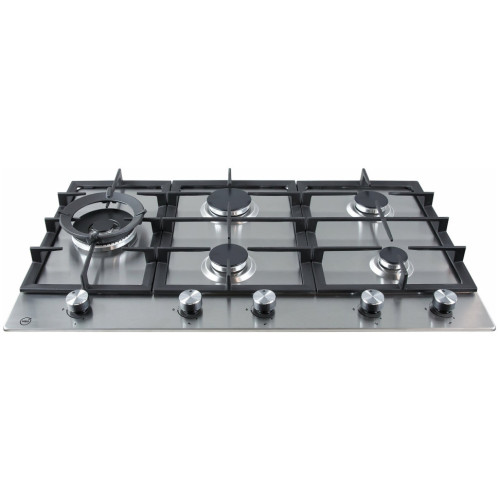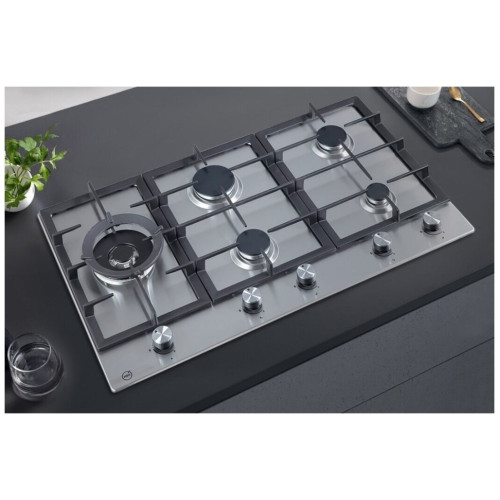 тип панели: газовая, количество конфорок: 5, материал панели: нержавеющая сталь, установка: независимая, ширина: 90 см, глубина: 51 см, газ-контроль конфорок