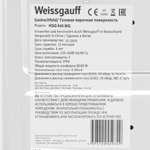 Встраиваемая независимая газовая панель Weissgauff HGG 640 BG шириной 60 см, исполненная в закалённом белом стекле - это стильное и компактное решение для вашей кухни! Ширина 60 см это европейский стандарт качества, признанный миллионами довольных покупателей по всему миру! Белое закаленное стекло не только роскошно выглядит, подчеркивая великолепный внешний вид данной модели, но и отлично справляется с механическими воздействиями и температурными перегрузками! Решетки из высококачественного чугуна это неизменное качество, надежность и долговечность, воплощенные в каждой детали! А особая элегантность их дизайна не только послужит отличным дополнением к общему стилю варочной панели, но и существенно облегчит очистку и уход за ней. А благодаря особому вниманию Weissgauff к каждой детали, вы еще не раз оцените устойчивость и эргономичность этих решеток! WOK-конфорка мощностью 3,4 кВт, которая создаёт сразу три кольца пламени и позволяет осуществить нагрев даже самой крупногабаритной посуды в кратчайший срок! Газ-контроль каждой конфорки обеспечивает наивысшую безопасность: в случае, если пламя погасло, подача газа будет автоматически прекращена! Рукоятки Hi-Tech дополняют современный, по-немецки выверенный облик модели. Более того, конструктивные особенности строения и расположения этих рукояток защищают их от перегрева и деформации при длительном термическом воздействии в процессе приготовления еды! Автоматический электроподжиг, независимо встроенный в каждую из рукояток, позволит зажечь любую конфорку за долю секунды, всего одним нажатием и поворотом руки, не прибегая к дополнительным приспособлениям!